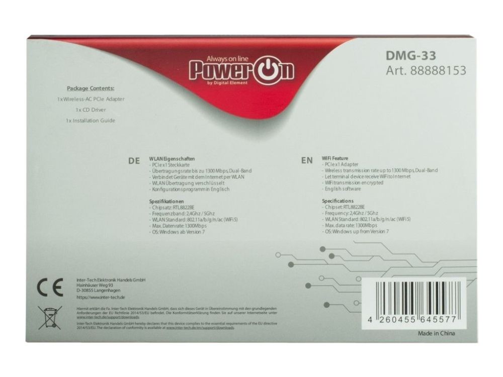 Inter-Tech DMG-33 - Nätverksadapter - PCI Express x1 - Wi-Fi 5