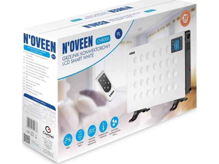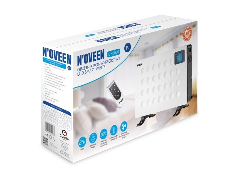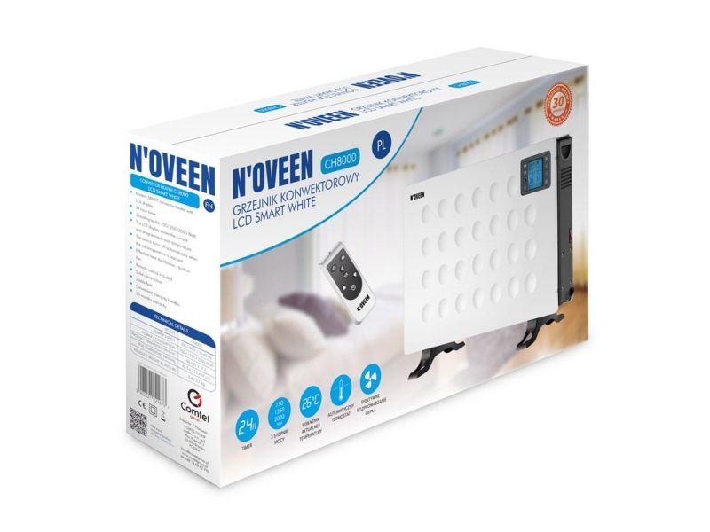CH8000 LCD SMART White convector heater has been designed and made to fit any type of room. The device is equipped with an LCD display that shows the current and programmed temperature in the room. The device has a 3-stage power adjustment, 24-hour timer and a remote control.