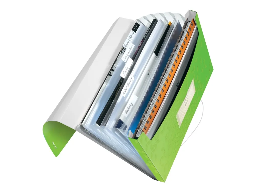 Leitz WOW - Dokumentplånbok - expanderar - 6 utrymmen - 6 delar - för A4 (210 x 297 mm) - kapacitet: 250 ark - tabbad - grön