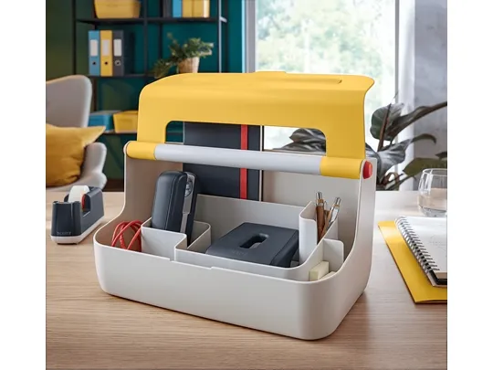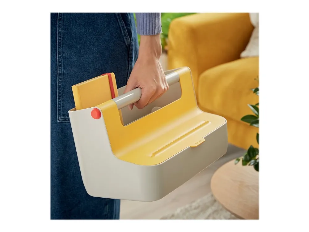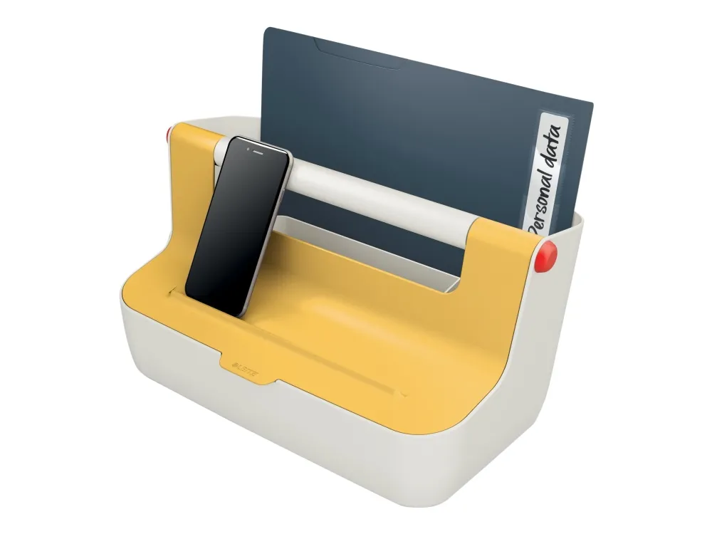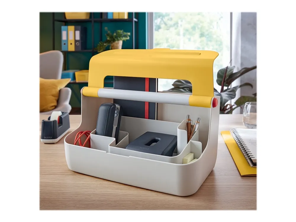 Discover the Leitz Cosy desk organizer, a practical solution for your workspace. Designed for documents, mobile phones, and tablets, it ensures that all your essential items are neatly organized and easily accessible. The organizer features an aluminum reinforced handle, adding durability and ease of mobility. Constructed from high-quality ABS plastic, it is a reliable addition to any desk. Its compact size of 21.4 x 19.6 x 36.7 cm is ideal for most workspaces, allowing you to maximize your desk area without sacrificing organization. Whether for personal use or as a gift, the Leitz Cosy desk organizer keeps your workspace tidy and efficient.