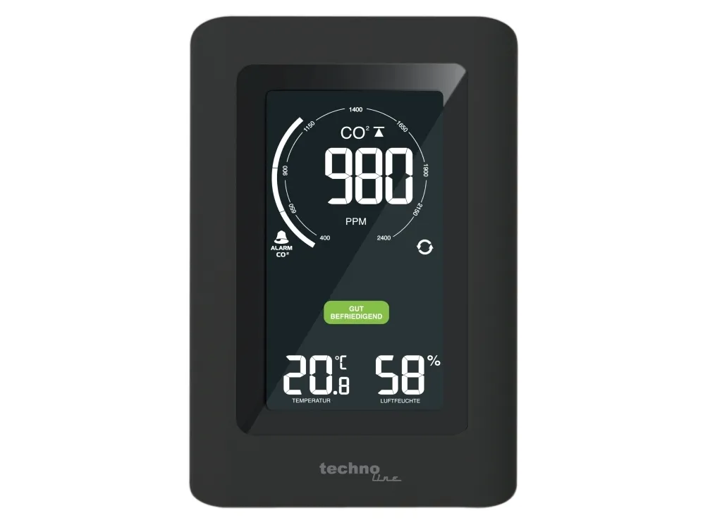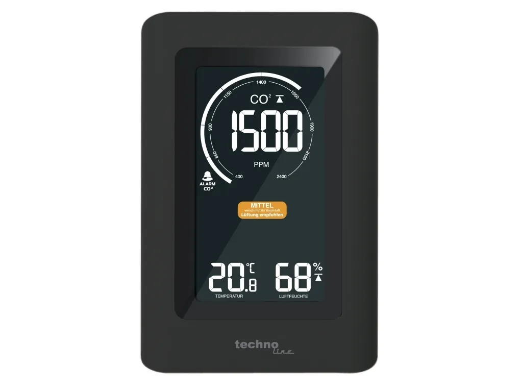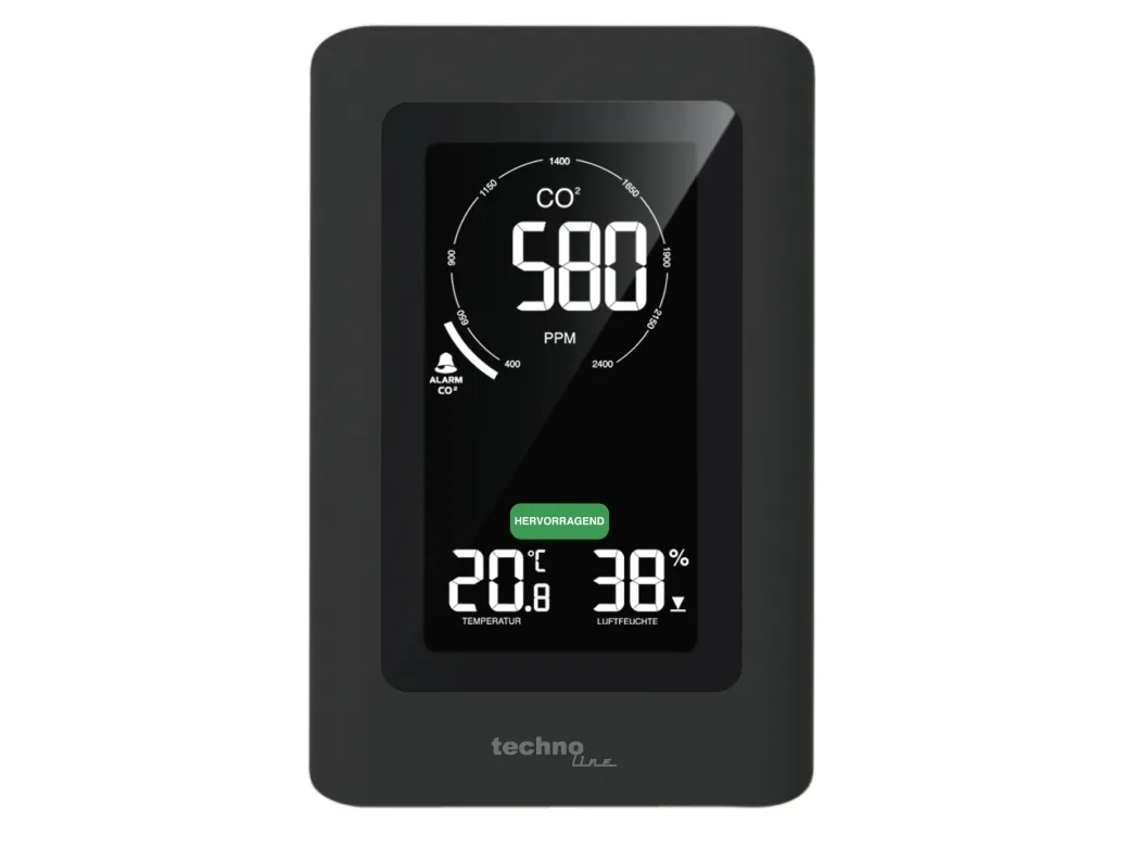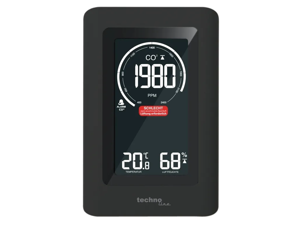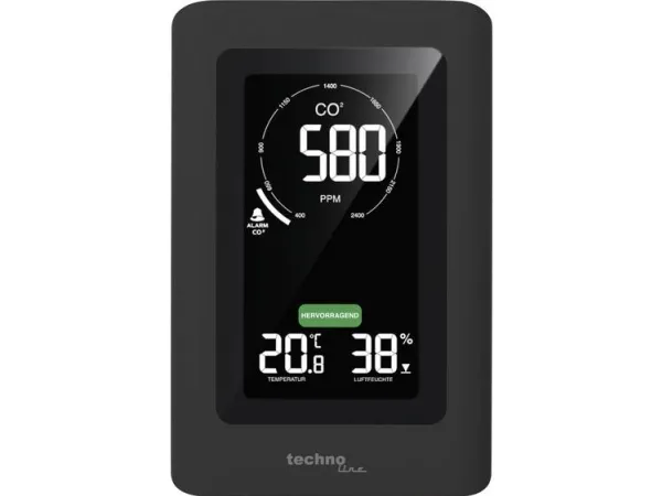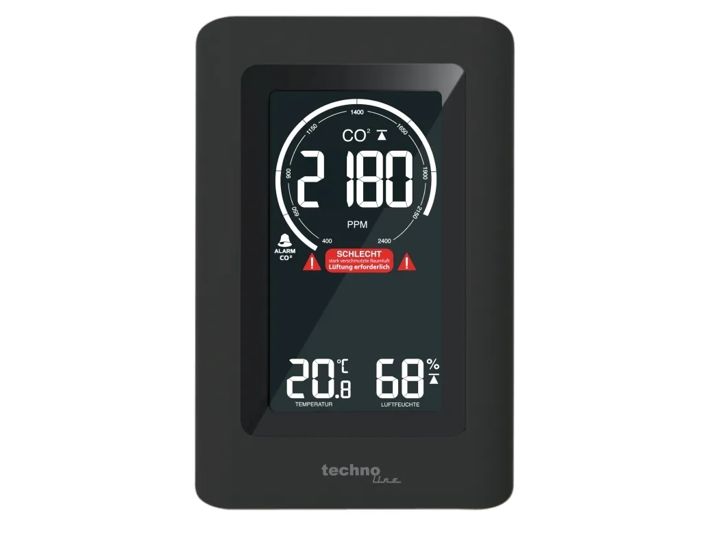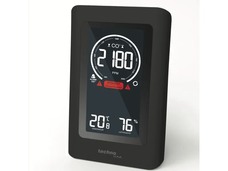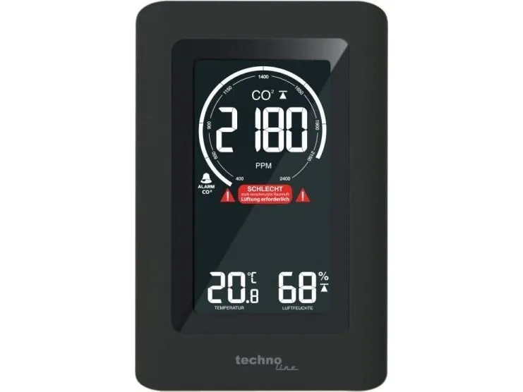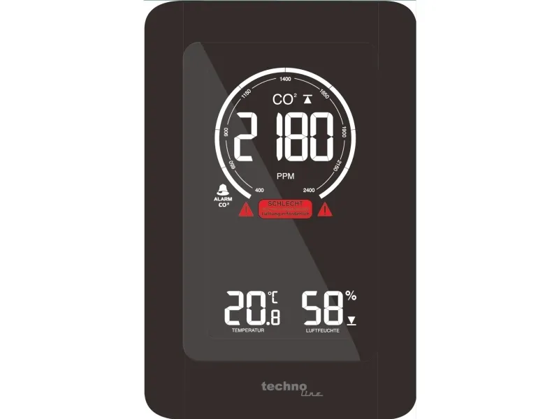 - Air quality sensor for monitorung of indoor air quality - Non-dispersive infrared (NDIR) gas sensor with CO2 measuring range up to 5000 ppm - Ventilation recommendation on basis of CO2 concentration in the air - Indoor temperature display in °C or °F - Indoor humidity display - MIN/MAX value memory of last 24 hours with auto-scrolling feature - Adjustable CO2 value alert with obtional alarm sound - Adjustable alert for high or low temperature and humidity - Calibration feature for CO2, temperature and humidity - Low battery indicator - Built-in ROM memory to save settings - Backlight with adjustable brightness levels - Table standing