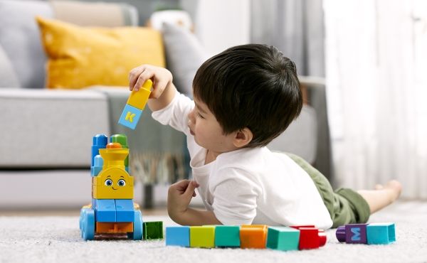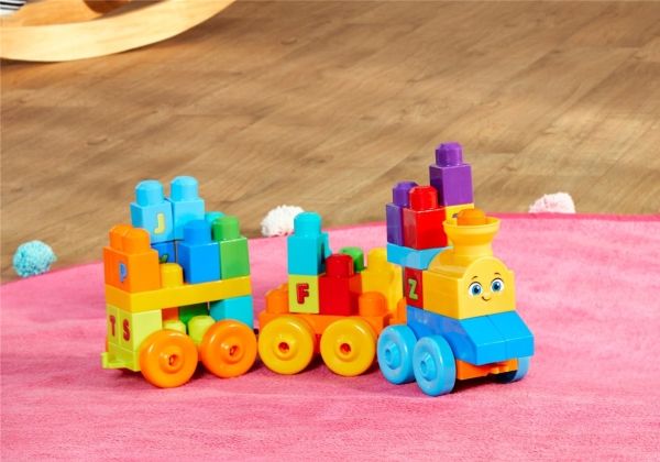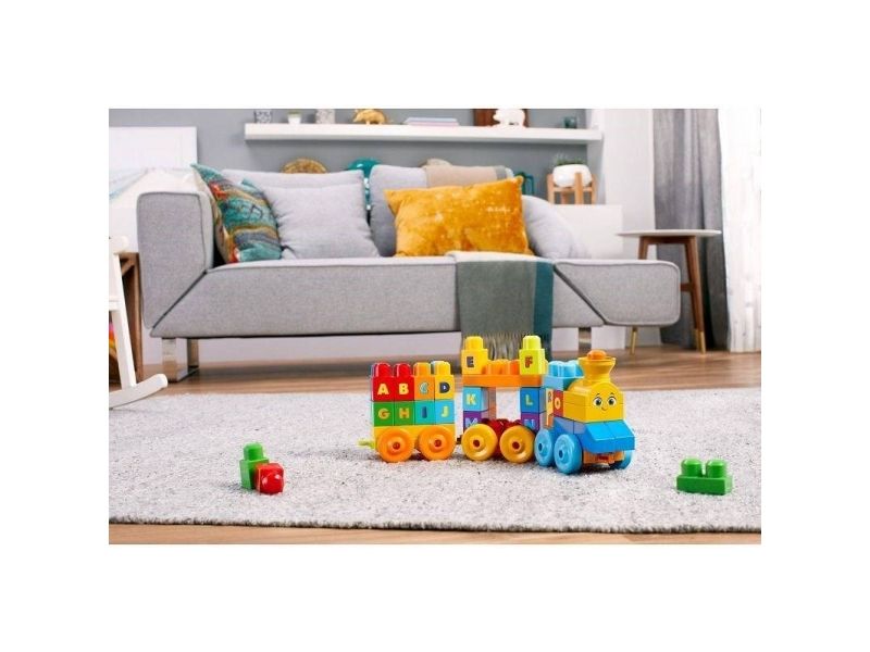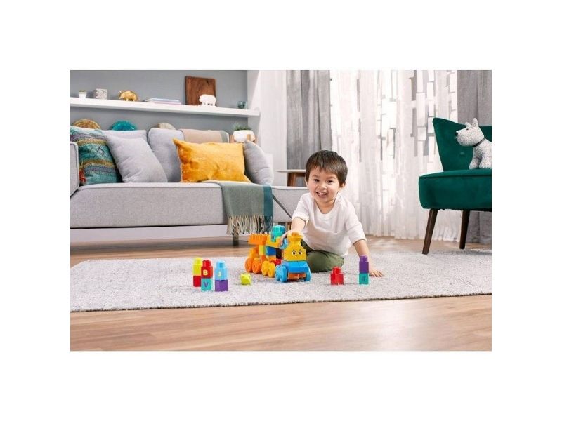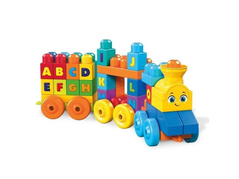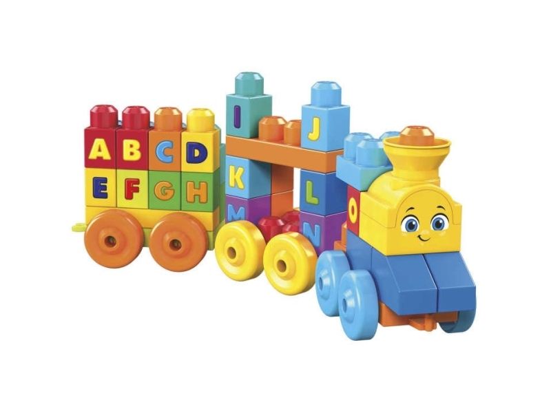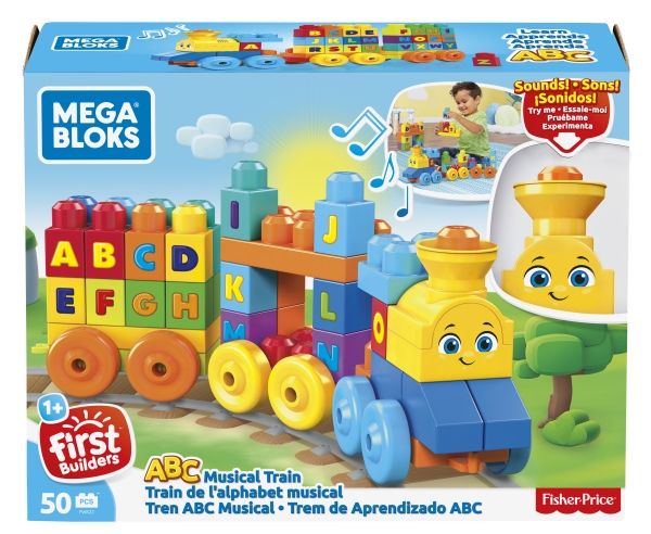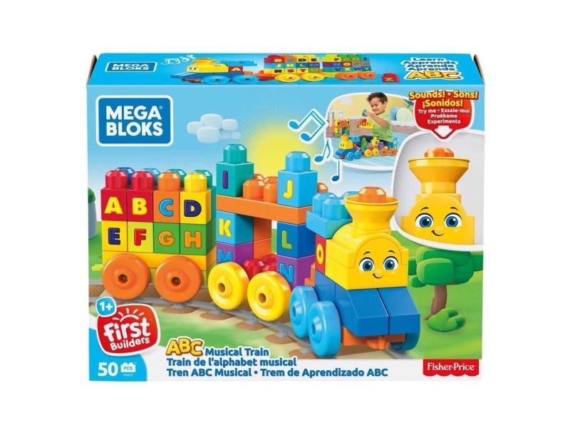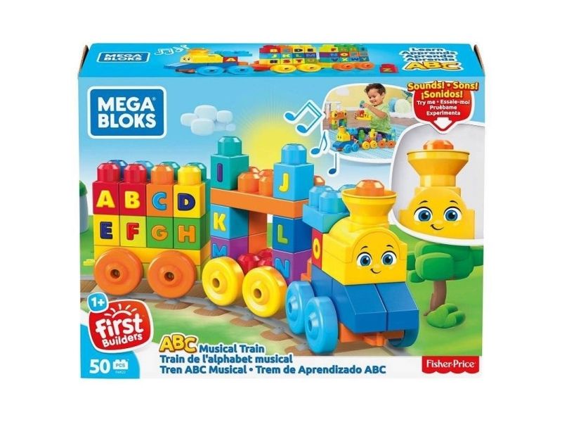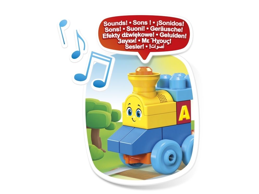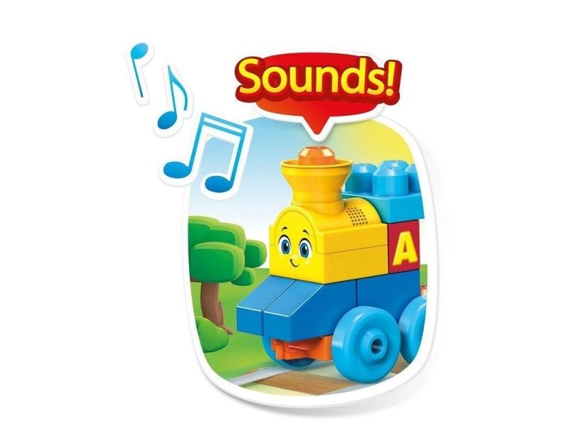Kliv ombord på ett alfabetståg med ljud och musik! Ditt barn kommer snabbt att lära sig alfabetet med det här musiktåget som är dekorerat med bokstäverna A till Z! Koppla samman de tre rullande hjulbaserna och stapla bokstavsklossarna på ovansidan för att lära dig alfabetet eller till och med skapa hela ord. Tryck sedan på tågets skorsten så hörs riktiga tågljud och en sång som ger musikmagi till ditt alfabetsäventyr! Perfekt för First Builders, från 1 år och uppåt
