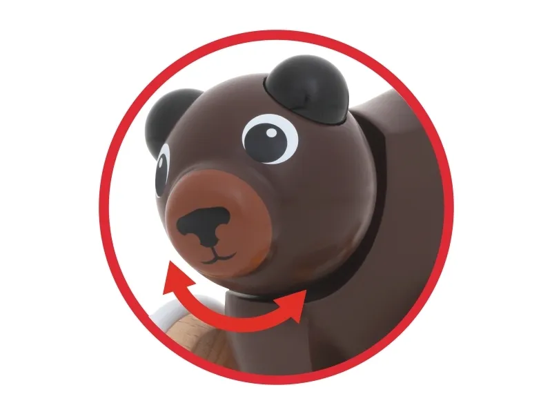 En snäll kamrat för äventyrliga småbarn – 30338 dragleksak björn. Se björnens söta huvud guppa när den lufsar genom skogen på jakt efter mat och skoj. Den här söta björnen är mer än bara en kamrat för ditt barn – den hjälper även till att utveckla finmotoriken.