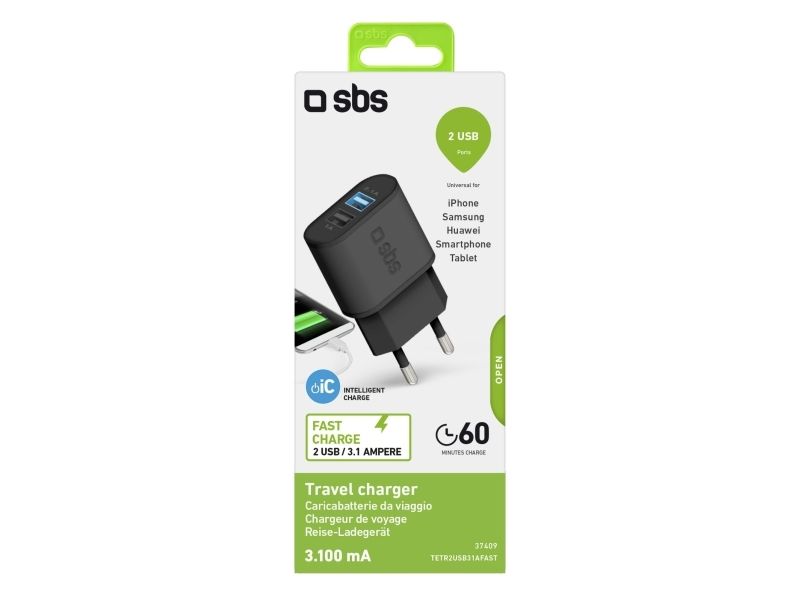 SBS TETR2USB31AFAST, inomhus, AC, 5 V, Svart