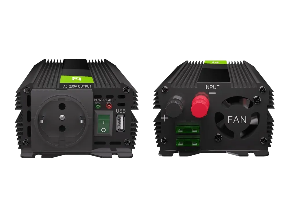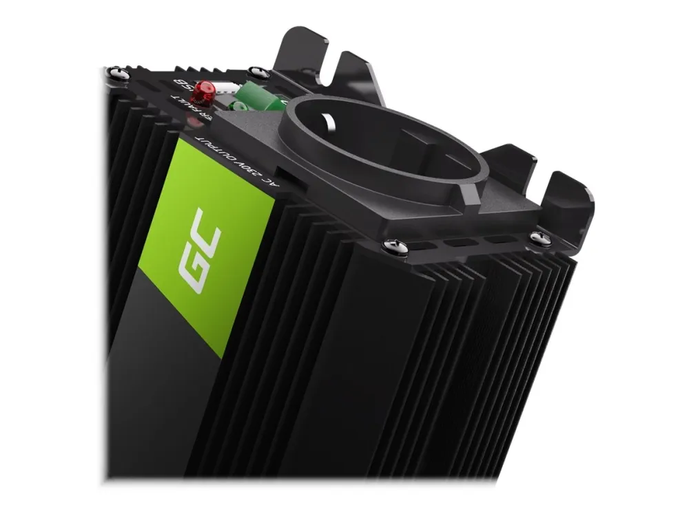 The Green Cell power inverters are devices, that alter the current 24 V DC from a car socket to 230 V. Using this solution, you can use any device while on the road, wherever you go. This specific model is intended to be installed on current. The device delivers power in form of a pure sine wave, which enables the use of any kind of device.