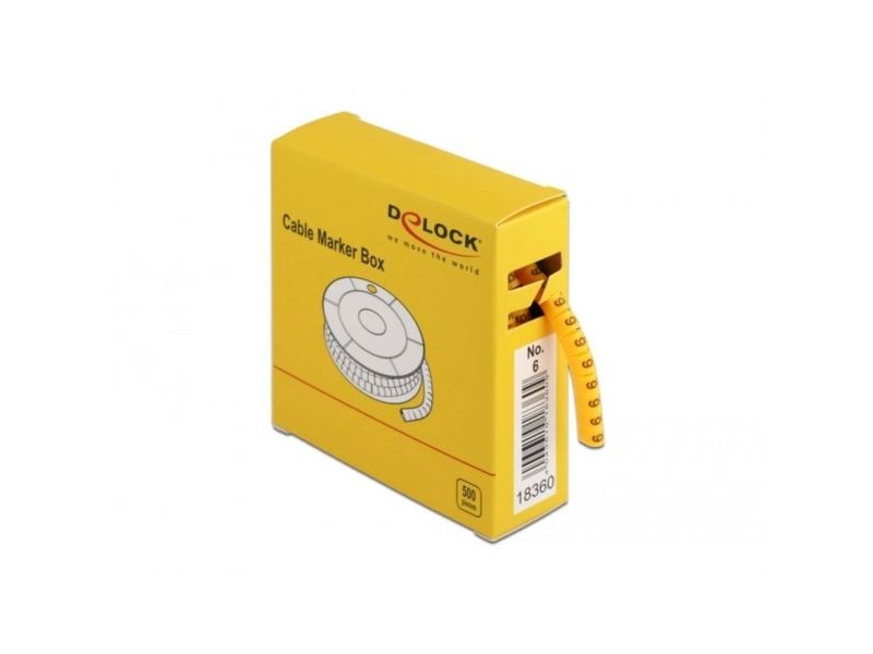 Delock Cable Marker Box, No. 6 - Lednings/kabelmärkare (förtryckt) - gul (paket om 500)