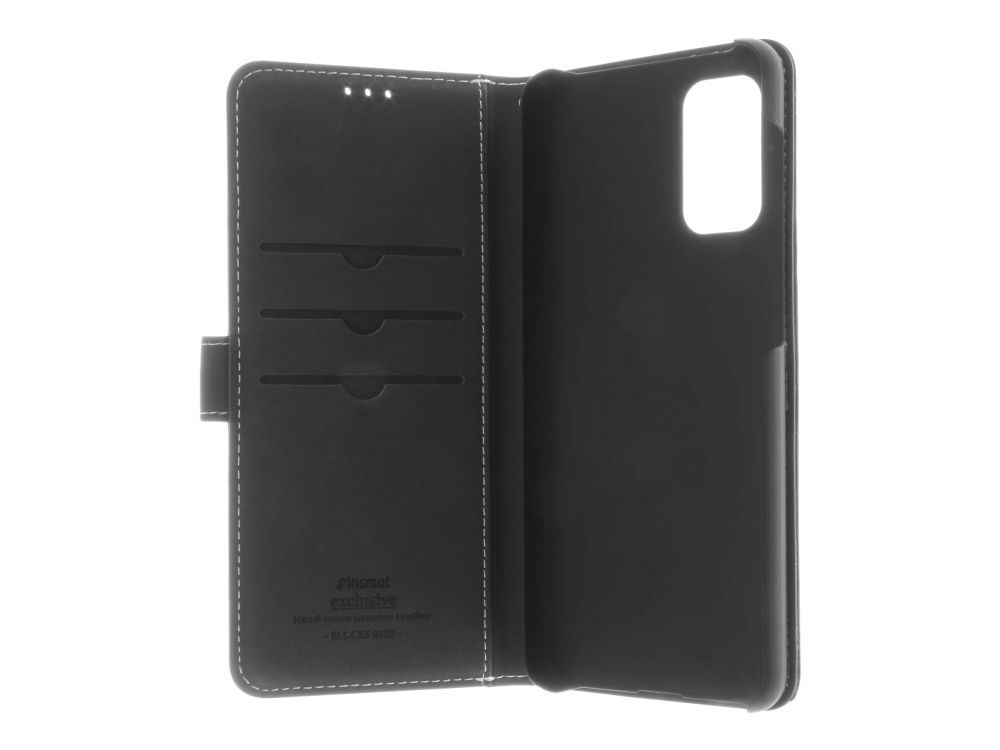 Insmat Flip Case - Vikbart fodral för mobiltelefon - genuint läder, termoplastisk polyuretan (TPU) - svart - för Samsung Galaxy A52