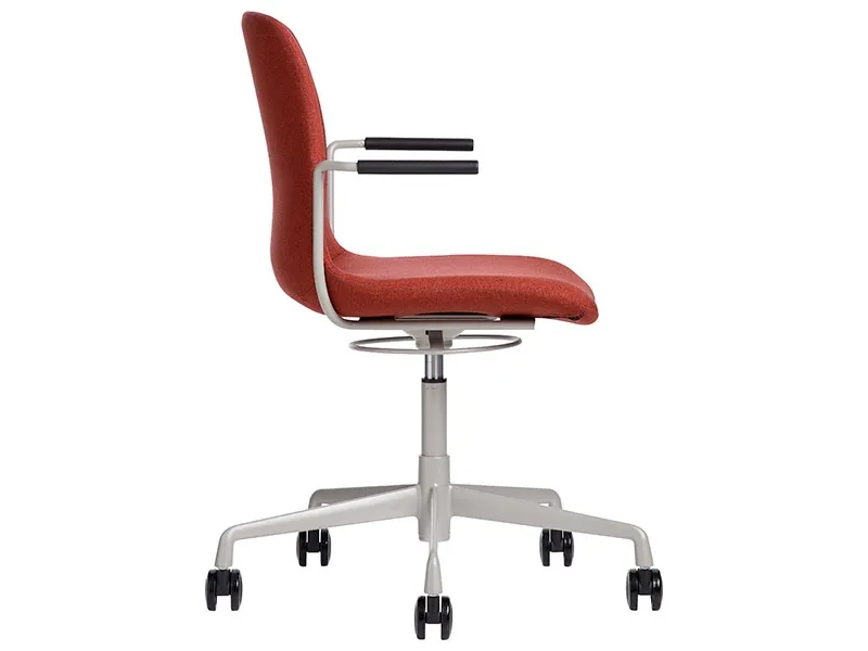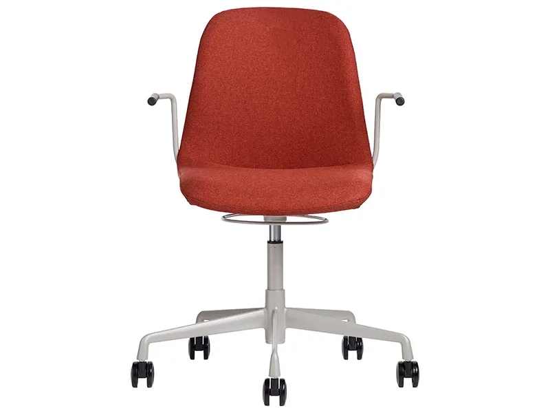 DNA konferencestol i rustrød på højdejusterbart, alugrå understel (RAL9006). Med samme tekstilpalet som vore DNA kontorstol, vil denne flotte konferencestol give et flot helhedsindtryk i dine kontorlokaler.DNA konferencestol er med sit pæne design, en moderne og komfortabel stol for store og små mødelokaler. Stoffet som er valgt for DNA konferencestol er Medley tekstil, fra den danske producent Gabriel. Medley er et delikat og meget slidstærkt tekstil med følgende klassificeringer: Vægt: 510 g/lm, Lysægthed ISO 105-B02: 5-7 (skala fra 1-8, hvor 8 er maks), Slidstyrke: 75.000 Martindale, Brandklasse: EN 1021-1 og 2 (cigaretter og tændstikker).De flotte armlæn fungerer også godt som ophæng på bord, således at rengøringen bliver lettere. Smart - ikke sandt?