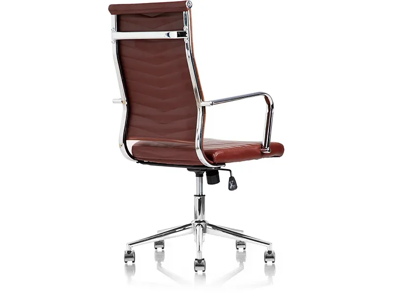 JUEL i brun udgave - en billigere, men komfortabel version af vore klassiske konferencestole. Juel leveres i brun skindimitation, med krom amlæn og V-mønstret ryg og sæde.