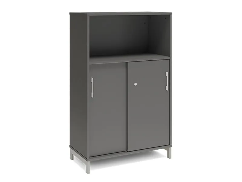 Kontorsskåp DNA, 800x1275 mm, antracit/vit, skjutdörr 3A4
