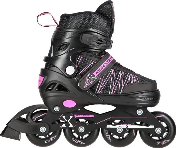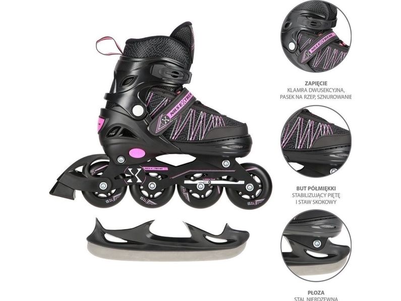 NILS EXTREME NH11912 A 2-i-1 skridskor svart/pink stl. S (31-34) med utbytbara hockeyskridskor