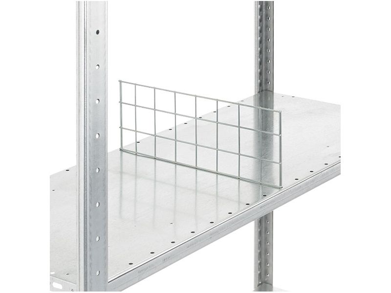 Praktisk hyllfördelare för placering på Boltless-hylla, 150 kg och djup 300 mm. Den Boltless-fördelaren levereras i bakplåt Galv. och med en maskvidd på 45 x 50 mm.