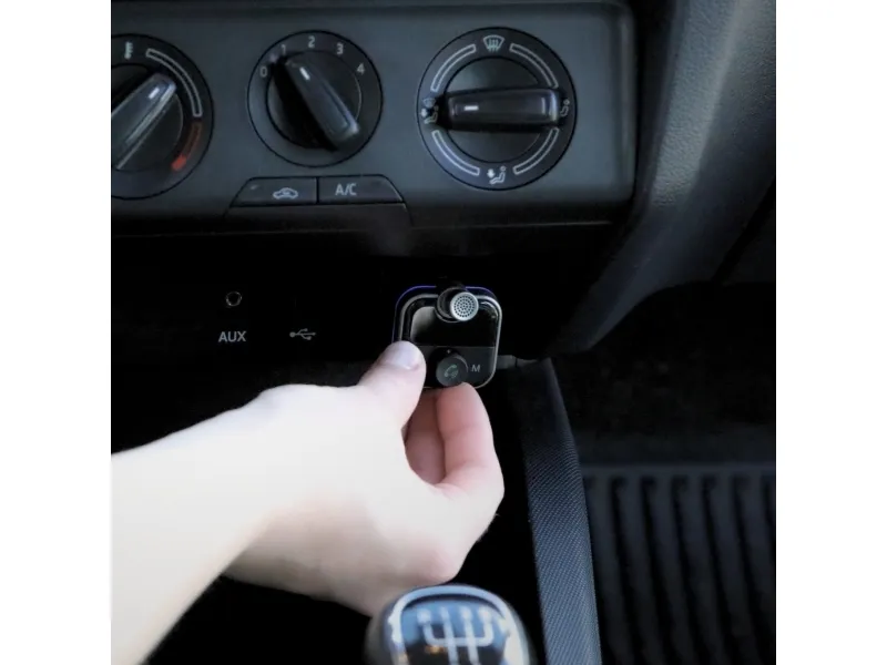 SAVIO TR-12 car transmitter is a multifunctional device equipped with Bluetooth 5.0. Used chipset allows to play mono music in excellent quality and two USB ports allow to quickly charge the smartphone using Quick Charge 3.0 and Power Delivery technologies. Combination of the hands-free function with a high-class rotary microphone guarantees the best quality during calls. Transmitter is equipped with a 5-step joystick which allows for quick and easy operation, LED display, bass boost function.