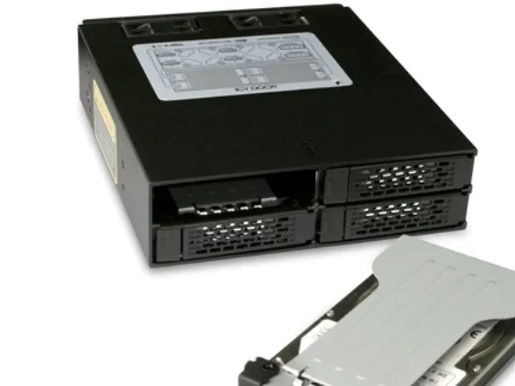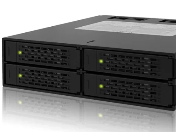 - Fits 4 x 2.5" SATA I / II / III and SAS HDD/SSD. - Accommodates Drives with up to 15mm Height. - Fits 4 Drives into a Single 5.25" Device Bay. - Status LED on Front for Each Drive. - Full Metal EZ Slide Mini Tray System with Full Cage Design. - Small Form Factor Perfect for IPC, Servers, and Small Form Factor Cases. - Front, Rear, Top, and Bottom Ventilation Slots. - Dual 40mm Cooling Fans. - Heavy Duty Full Metal Construction. - Support SATA 6Gbps. - Top Cover for the Tray Adds Extra Drive Protection.