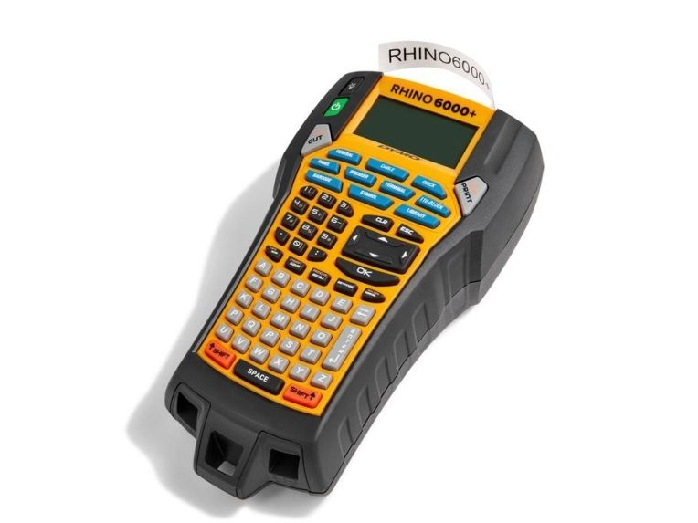 PC-connected or portable labeling tool that saves you time and money Bring the tough, portable Rhino™ 6000+ to any jobsite – it’s packed with time-saving shortcuts for labeling any installation quickly and professionally. Connect it to your PC, and use Dymo ID™ software* to create labels on your computer, and download them to your labeler for even faster labeling on site. The Rhino 6000+ meets key ANSI and TIA/EIA-606-B industry labeling standards. Its proprietary, one-touch “Hot Keys” automatically format label text for electrical and patch panels, terminal and 110 blocks, wire and cable flags, horizontal and vertical warps, vertical and fixed-length applications. The Rhino 6000+ also prints 8 barcode types, 250+ preprogrammed industry symbols and terms, and much more.