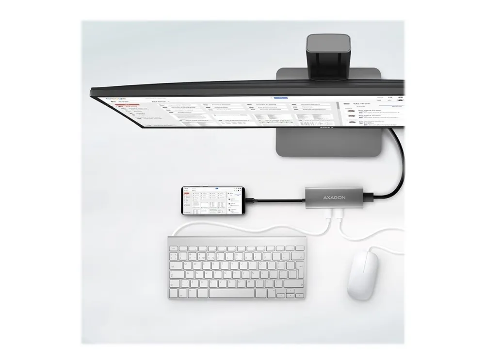 AXAGON HMC-5G2 SPEEDSTER 5H är en mångsidig USB-C-dockningsstation som är utformad för att förbättra anslutningsmöjligheterna och utöka funktionaliteten. Med en integrerad 13 cm USB-C-kabel förenklar denna dockningsstation anslutningsprocessen samtidigt som den levererar flera gränssnittsalternativ inklusive HDMI, USB 3.2 Gen 2 och USB-C 3.2 Gen 2 med strömförsörjning upp till 60 W. De dubbla HDMI-utgångarna stöder upplösningar upp till 4096 x 2160 vid en uppdateringsfrekvens på 30 Hz, vilket gör den till ett perfekt val för professionella ändamål och underhållning. USB-drift säkerställer portabilitet utan behov av en extern strömkälla, medan funktioner som överbelastningsskydd, kabelskärmning och LED-indikatorer förbättrar säkerheten och användbarheten. Upplev mångsidighet med stöd för Mirror Mode och Extended Mode, vilket ger sömlösa övergångar mellan flera skärmar.