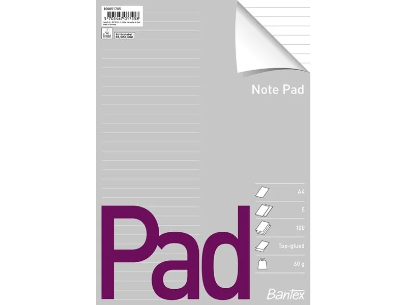 Bantex 100051785, 210 x 297 mm (A4), Linjerat papper, 60 g/m ^, Vit, 210 mm, 295 mm