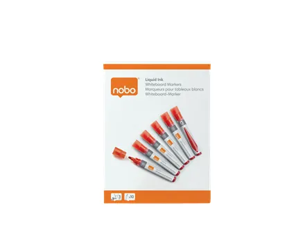 Nobo Whiteboard Penna Flytande Bläck Kulspets 10/Fp, 10 styck, Röd, Rundad spets, Röd, Silver, 3 mm, 38 mm
