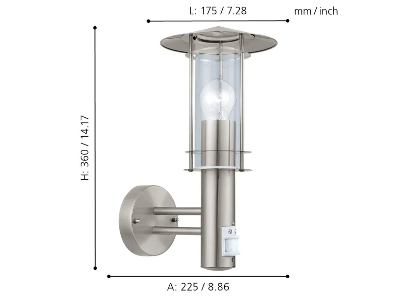 EGLO 30185, Väggbelysning för utomhusbruk, Rostfritt stål, Rostfritt stål, IP44, Entré, Garage, Trädgård, Terass, I
