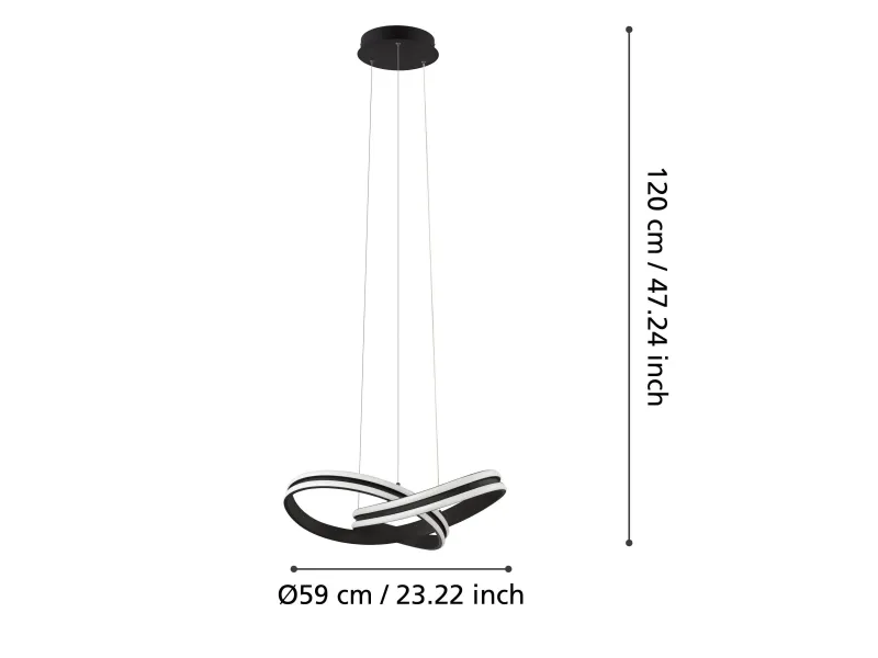 EGLO CORREDERA pendel i modern svart design. H:120 cm, Ø:50 cm. 2x 18W LED, 5000LM, 3000K. IP20.