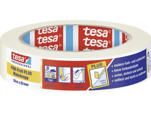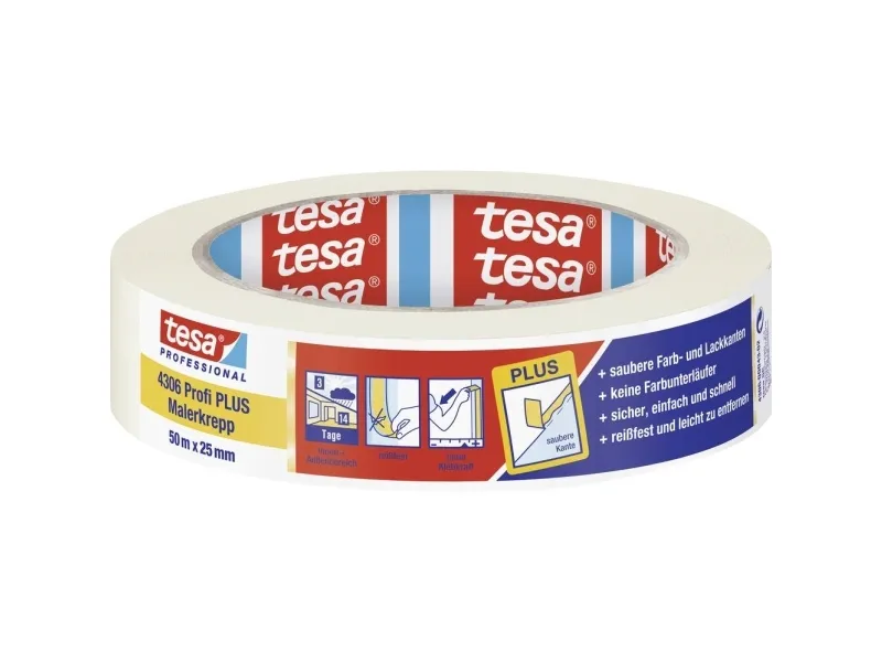 Tack vare sin höga vidhäftningsstyrka ger Tesa Painter's Tape Profi Plus exakta och rena färgkanter utan understrykning och är lätt att applicera.