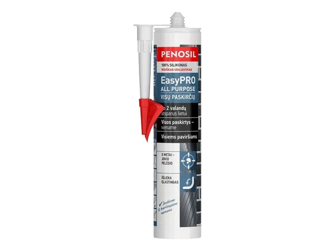 Brand- Penosil. Collection- Easypro. Colour- White. Temperature resistance- -40 - +150°C. Moisture resistant- Yes. Mould-resistant- Yes. Conditions of use- , Indoors. Pistol-type- Yes.