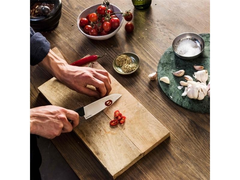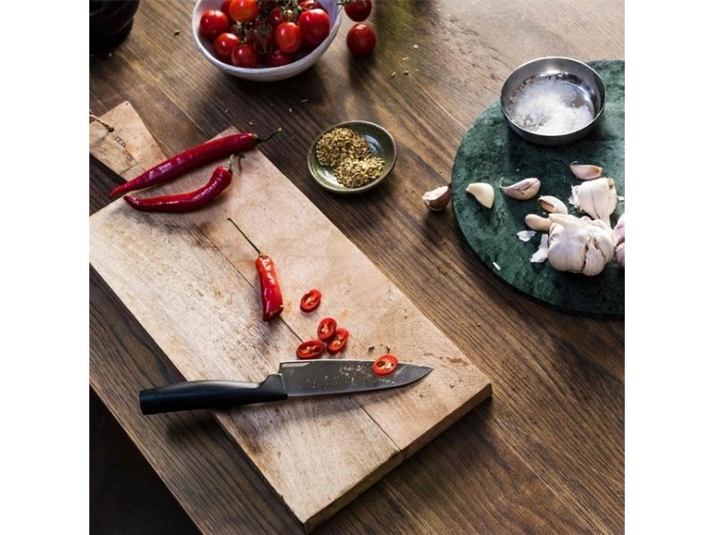 Discover the Fiskars Hard Edge cook's knife, a small yet powerful tool designed to enhance your culinary experience. This knife features innovative LZR-EDGE technology, ensuring precise cuts with every use. Tested by CATRA, it meets high standards of cutting performance. The Softgrip handle, combined with an integrated finger guard, provides a comfortable and secure grip, reducing fatigue during prolonged use. Its dishwasher-safe design makes cleanup a breeze, allowing you to maintain its condition without extra effort. Crafted from durable stainless steel and equipped with a plastic handle, it achieves an optimal balance of hardness at HRC 52, making it a reliable choice for various cooking tasks. Whether you're dicing vegetables, slicing meat, or chopping herbs, the Fiskars Hard Edge cook's knife is your go-to kitchen tool.