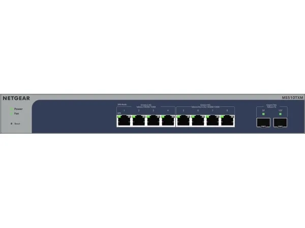 NETGEAR Smart Managed Pro Switches with Optional Remote/Cloud Management The NETGEAR® MS510TXM 8-Port Multi-Gigabit/10G Smart Managed Pro Switch offers 4 ports 1G/2.5G and 4 ports multi-gig/10G with 2 dedicated 10 Gigabit fiber ports for WiFi 6 AP connectivity, IP surveillance and mobility. MS510TXM can be managed remotely by NETGEAR Insight and includes 1-year of Insight Premium or Pro subscription with purchase.