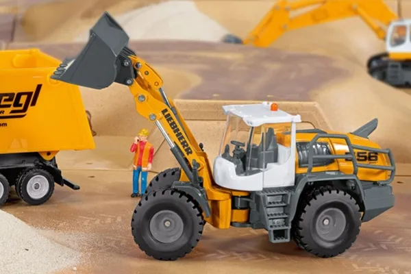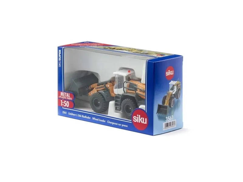 Detailed toy model of a Liebherr L 556 wheel loader. Robust and stable metal and plastic design, Movable articulated joint, Opening bonnet, Movable shovel and front loader, Excellent mobility thanks to rubber tyres. Perfect addition to other siku products. Scale: 1:50, Material: metal/plastic, Dimensions: 17.1 x 5.5 x 7.3 cm.
