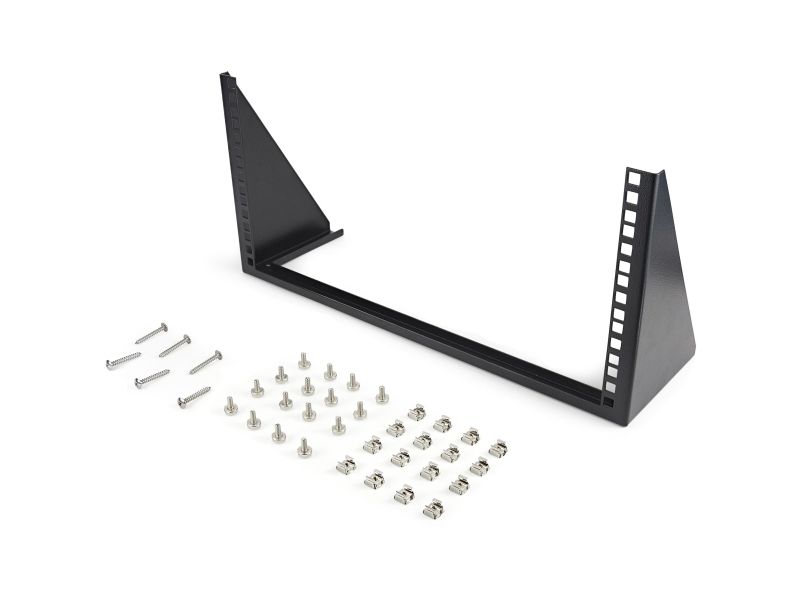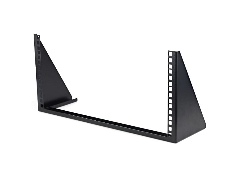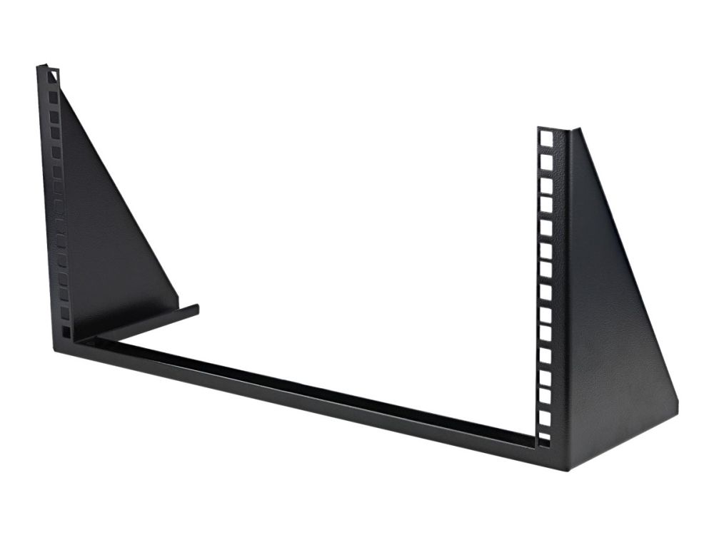 RK519WALLV 5U rackfäste för väggmontering erbjuder en mångsidig lagringslösning som gör att utrustning (nätverksenheter, grenuttag, patchpaneler) kan monteras vertikalt (jämnt mot väggen) för att spara plats. Alternativt kan 5U-fästet installeras under ett skrivbord för horisontell installation så att installerad utrustning enkelt kan nås direkt från arbetsplatsen. Denna TAA-kompatibla produkt uppfyller kraven från US Federal Trade Agreements Act (TAA) vilket tillåter statliga GSA Schedule-inköp. Väggmonteringsfästet är perfekt för hemma- eller småföretagsmiljöer och ger platsbesparande installationer där ett serverskåp i full storlek inte får plats. Fästets monteringshål (används för montering på vägg eller undersida av skrivbord) passar i stort sett vilken tak-/väggyta som helst och sitter 16 tums ifrån varandra för att matcha standarder inom konstruktion.