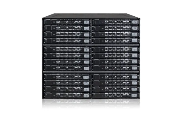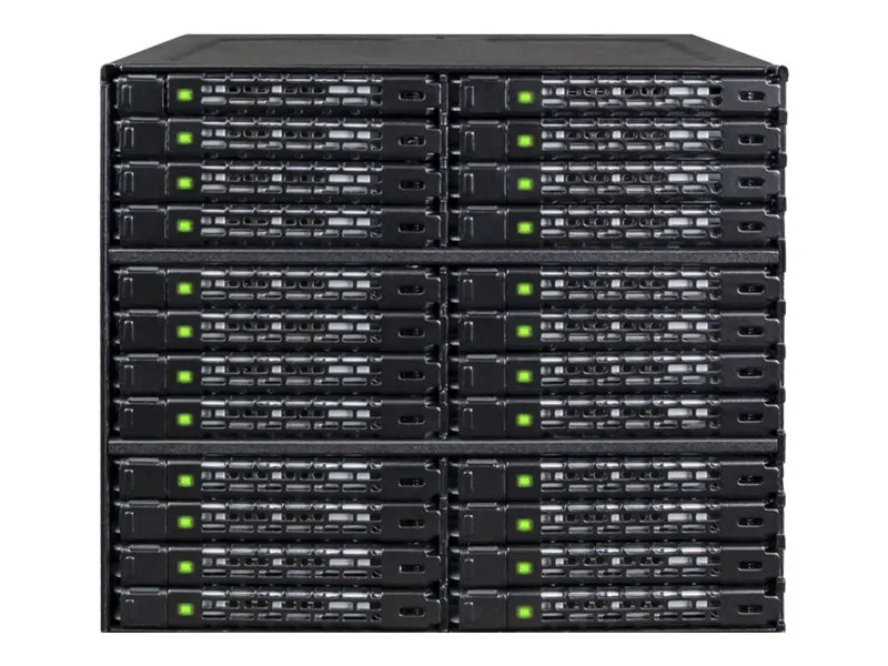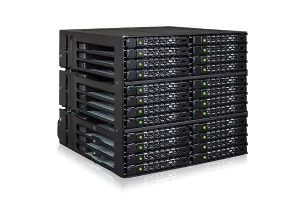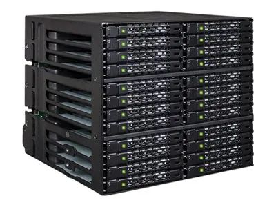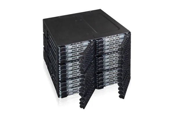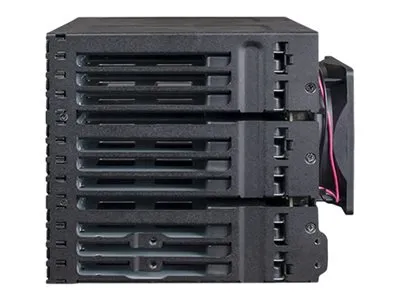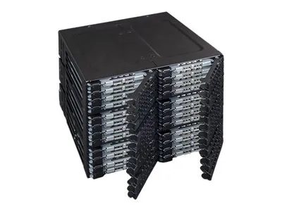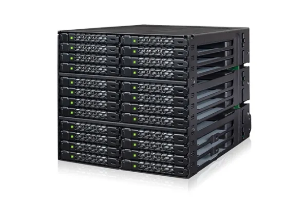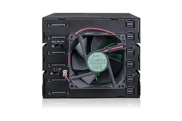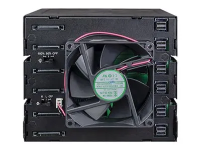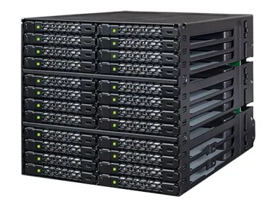 The ToughArmor MB924IP-B supports 24 x 2.5" SAS/SATA SSD/HDD up to 7mm in height and only uses 3 x 5.25" device bays. It has 6 x MiniSAS HD (SFF-8643) connectors in the rear to support 24 x drives with up to 12Gbps transfer speed per drive, significantly reducing the cable clutter to improve system airflow and offer easy cable management. The large 80mm fan with 3-Mode fan speed control working along with intelligently placed ventilation holes keeps your drives in optimal temperature. To further improve reliability and security, the housing and trays are made with ruggedized full metal construction to ensure long-lasting durability. Moreover, with the removable EZ-Slide Nano trays, you can interchange drives within seconds without open the PC case.