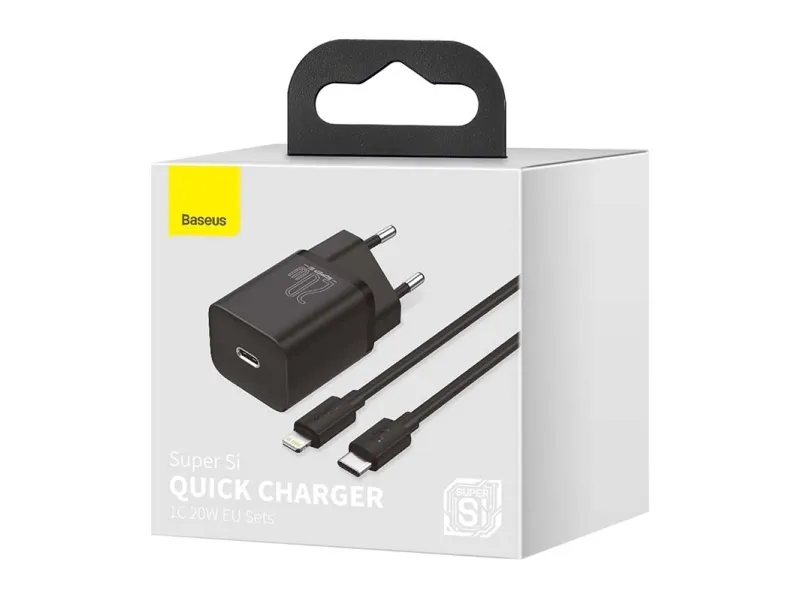 Baseus - Strömadapter - 20 Watt - 3 A - PD 3.0 (24 pin USB-C) - på kabel: Lightning - svart