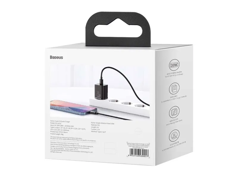 BASEUS USB-C till Lightning-kabeln är utformad för dem som behöver snabb och pålitlig laddning för sina enheter, inklusive surfplattor och mobiltelefoner. Med en uteffekt på 20 W och kompatibilitet med Power Delivery 3.0 levererar denna strömadapter den nödvändiga spänningen på 5 / 9 / 12 / 15 V för att säkerställa snabb laddning. Den är tillverkad av slitstark akrylonitrilbutadienstyren (ABS), vilket ger hållbarhet samtidigt som den fungerar som en effektiv bärbar laddare för användning på språng. Säkerhetsfunktionerna är inbyggda i konstruktionen och erbjuder temperaturskydd, kortslutningsskydd och överspänningsskydd. Den intelligenta designen inkluderar automatisk övervakning av tryckbelastning och elektrostatiskt skydd, vilket säkerställer att enheterna laddas säkert och effektivt. Kombinationen av funktionalitet och skydd gör den här produkten till ett utmärkt val för strömförsörjning av dina enheter var som helst.