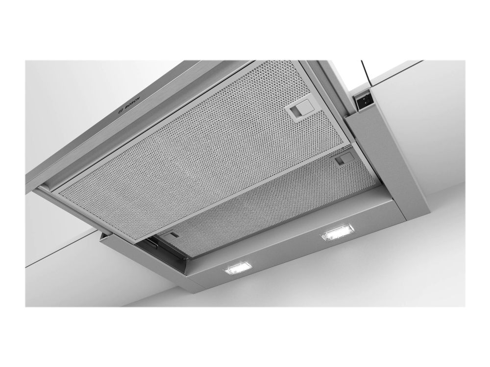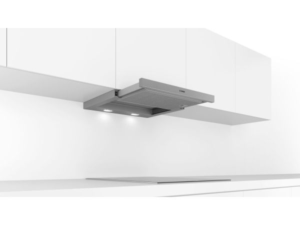 Bosch Serie | 2 DFM064W54 - Kåpa - teleskopisk - Fördjupning - bredd: 52.6 cm - djup: 29 cm - utsug och återcirkulering (-) - med inbyggd motor - silver-metallic