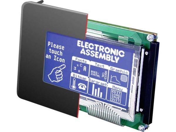 Indikatorer, displayerIntelligent styrenhet med blåvit grafisk display med 240x128 pixlar. Vit LED-belysning och RS-232-gränssnitt. Med pekskärm 10x6, RS-232-kabel och D-sub 9. Digitala in- och utgångar, 5V-försörjning (tillval 9..35V).