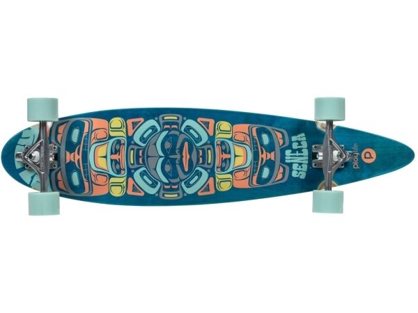 Playlife Seneca är en klassisk pintailbræt designad till hverdagsbrug i den perfekta formen på 38x9 ". Lavet af russisk ahorn for stor flex og pop og den ultimative cruisingoplevelse. De høje kvalitetsstøbte trucks i hög kvalitet ger den perfekta geometri for at göra udskæringen og styringen let, og de superhøje rebound-bøsninger bidrar til den overordnede store ydeevne på dette board. Udstyret med hurtige og holbare ABEC 9-lejer og støbte bløde og glatte superhøje rebound-hjul i 78A hårdhed og 70 mm diameter