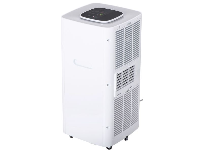 In summer, we are looking for the best way to lower the temperature. But we do not want the air to become uncomfortably dry, which can happen with high-speed fans. In autumn, we check solutions that will allow us to dry too humid air, which affects the sensed warmth and comfort of staying indoors. The air conditioner is a very efficient device that does not consume large amounts of energy during operation, so you do not have to worry about high electricity bills. Our product is equipped with the three most important functions: cooling, drying, and fan, thanks to which you will quickly and efficiently take care of the preferred conditions in the living room, bedroom, or day room. The device guarantees effective cooling of spaces up to 20 m². You can choose the temperature which is the best for you, from 15 to 31 degrees Celsius, and you can also set one of two fan speeds. The manufacturer guarantees an airflow of 220 m³/hour. On the other hand, the drying efficiency fluctuates around 14.4 liters/day. Thanks to this, you will quickly improve the conditions in your home or apartment.