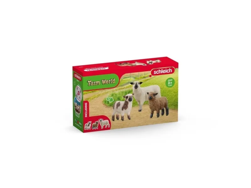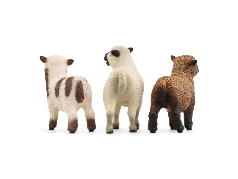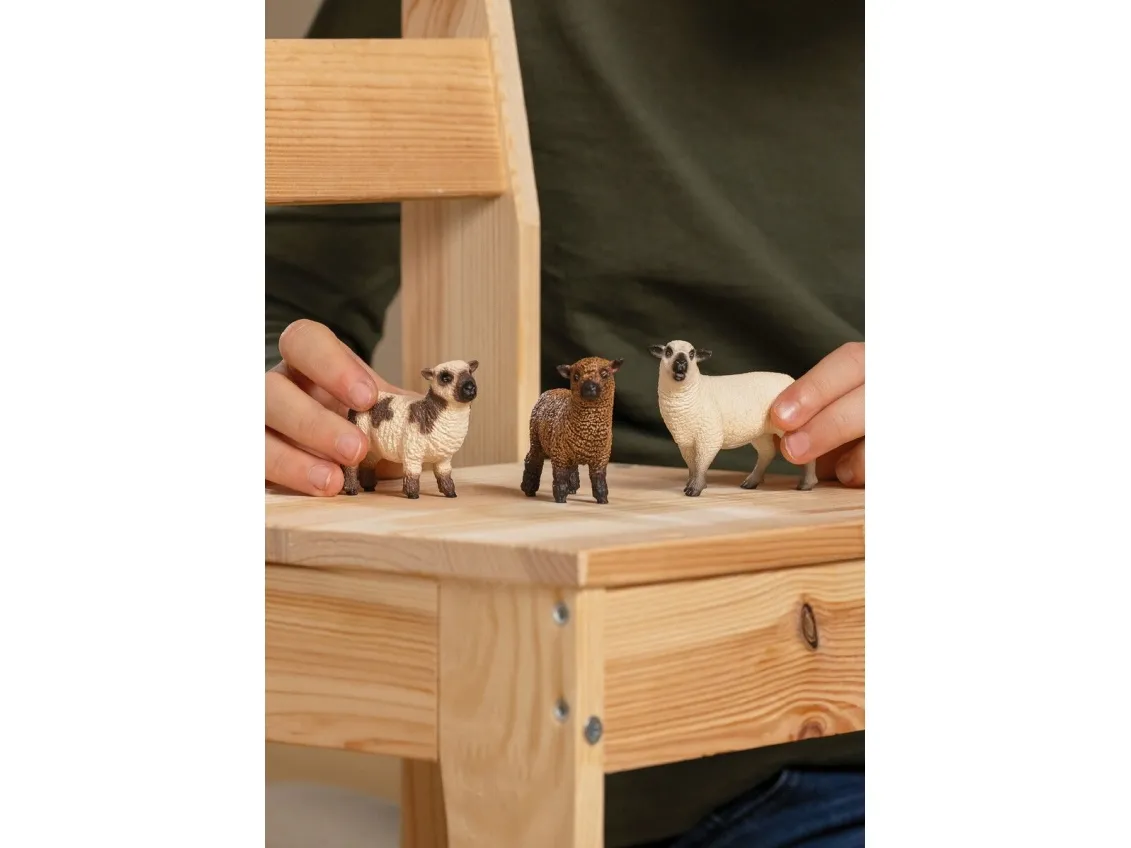 Man måste bara älska det här ulliga gänget! De tre fluffiga fåren kastar en nyfiken blick för att se vem som närmar sig hagen. Men de är lite blyga. Det bruna och det brun- och vitfläckiga southdown babydollfåret smyger intill det tredje fåret i gruppen – det vita hampshirefåret med sin svarta mule. Jag undrar om det är modigare än de andra? De tre ulliga fårvännerna känner sig definitivt modigare tillsammans än om de vore ensamma. Och de har rätt: Livet är bättre med vänner!