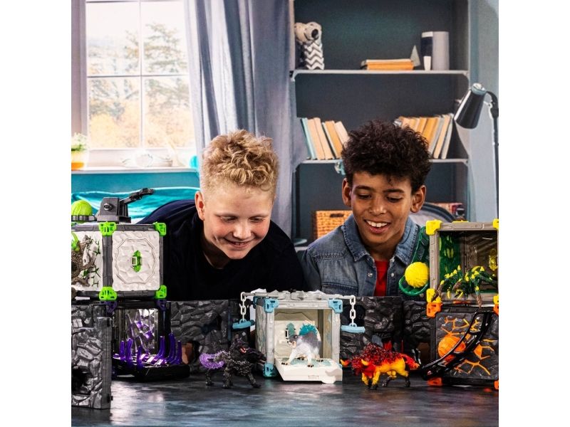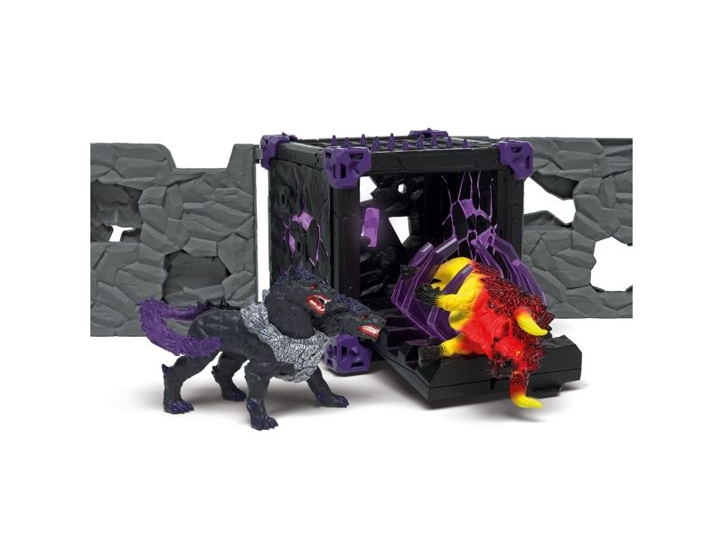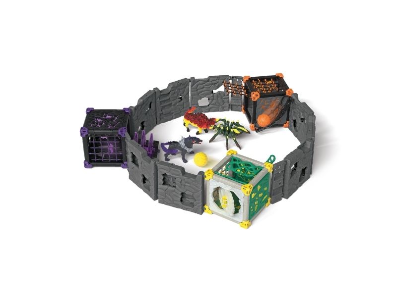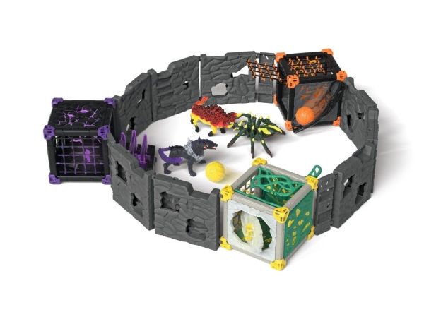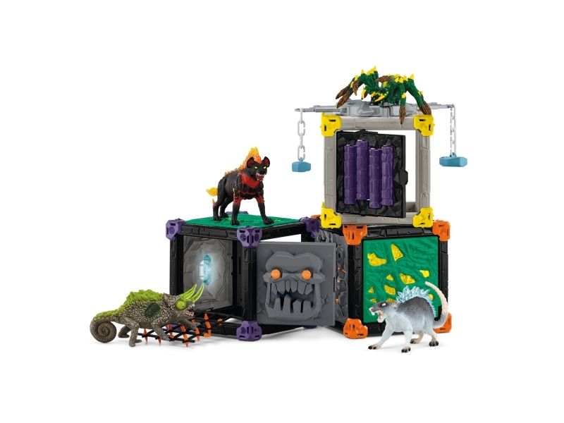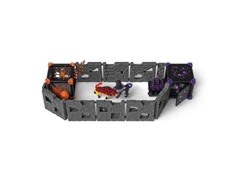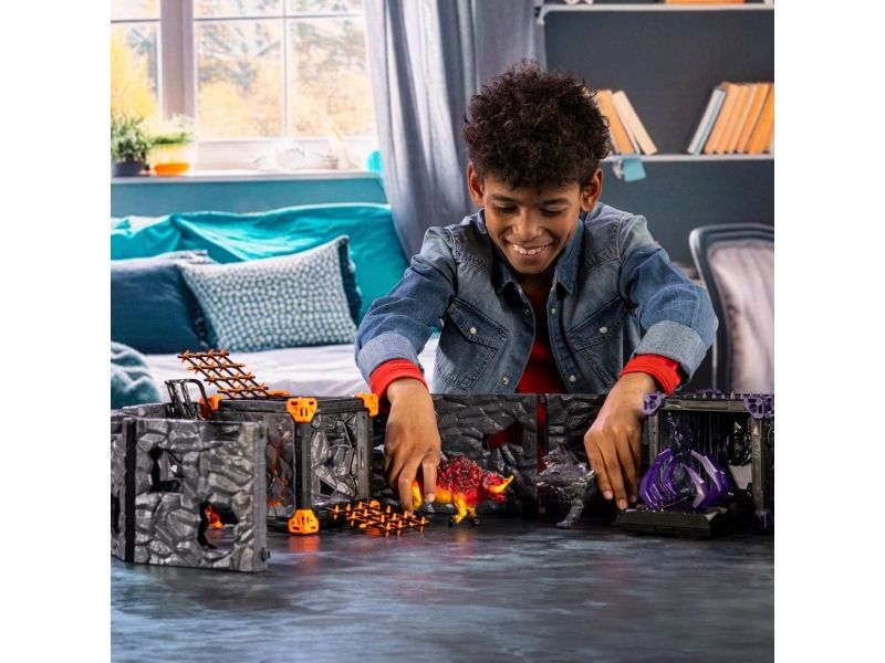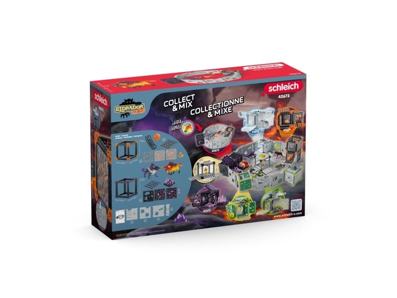 Det hettar till på arenan! BattleCaves ställs mot varandra och inväntar sin tur. Det är här som varelserna i ELDRADOR® försvarar sina dyrbara världskristaller. Den farliga Eldstjuren är redo för attack. Han gapar och visar sina huggtänder. Sedan skakar han sitt mäktiga huvud. Kommer Skugghunden att ge sig in striden och ta sig in i Lava BattleCave? ELDRADOR® CREATURES BattleCaves förvandlar varje barnrum till en actionzon! Vem ger sig in i den hisnande striden? Alla BattleCaves kan kombineras. Skrämmande tunnlar och kluriga fällor väntar på angriparna. På den stora arenan kan de sedan mötas för den slutliga duellen. Vilken kamp!