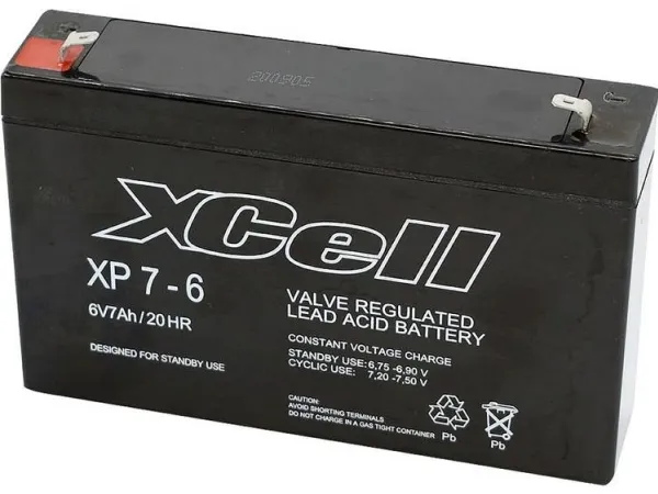 XCell XP 7 - 6 XCEXP76 Blybatteri 6 V Blyfilt (B x H x D) 151 x 100 x 34 mm Platt kontakt 4,8 mm, platt kontakt 6,35 mm Underhållsfritt
