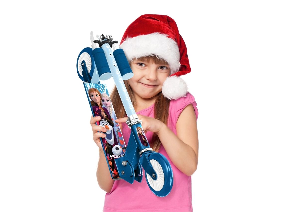 Frost II hopfällbar sparkcykel med broms baktill. Den perfekta sparkcykeln för alla Frost II-fans som tar dig överallt! Den är lätt att ta med på resor och semestrar. Användarens maxvikt 50 kg Ålder 5+