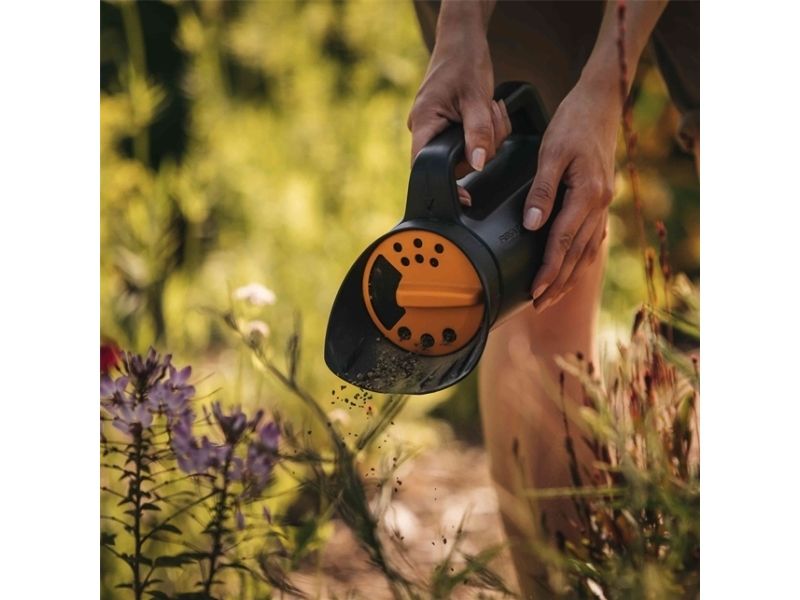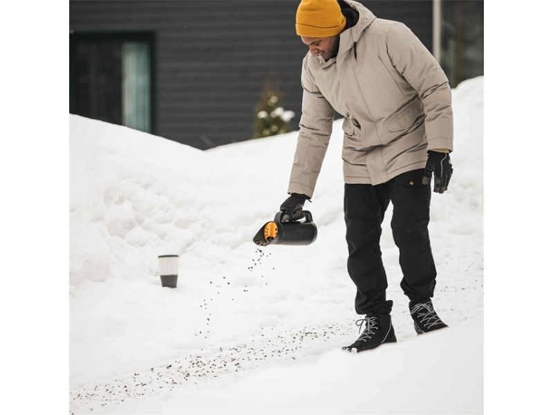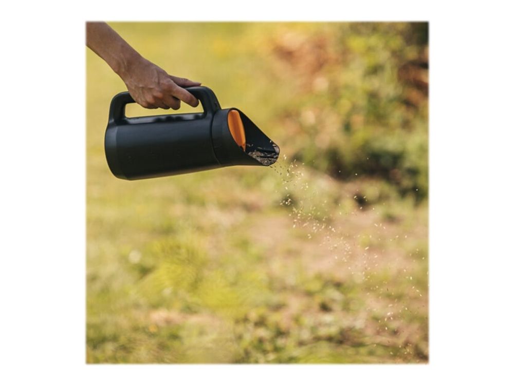 Fiskars Solid Spreader is ideal for evenly spreading sand, salt, fertilizer and more. A unique, easy-to-turn selection knob allows you to choose from three dosings while spreading: pour, fast flow or slower flow.