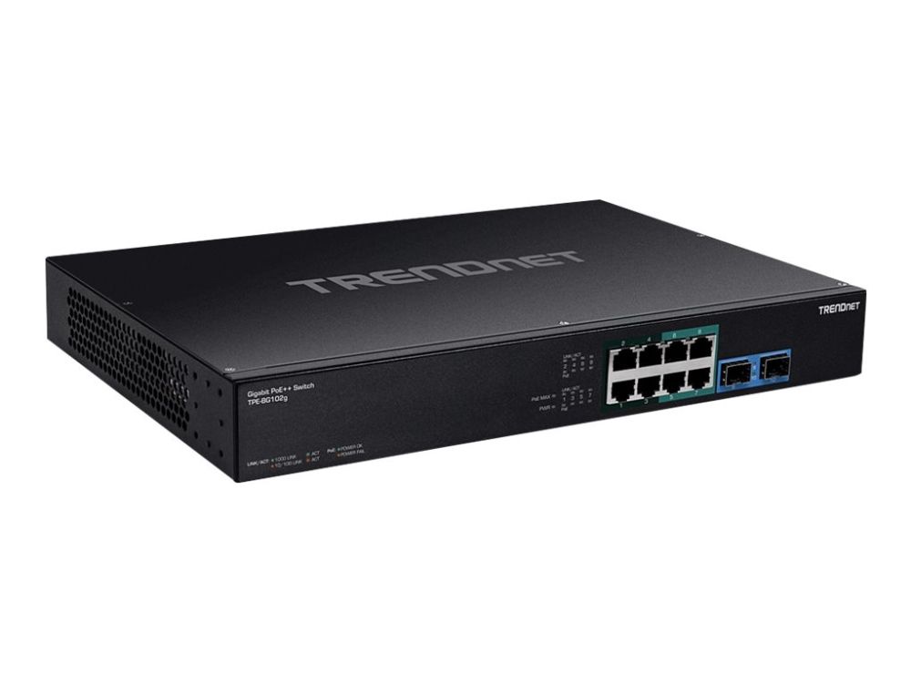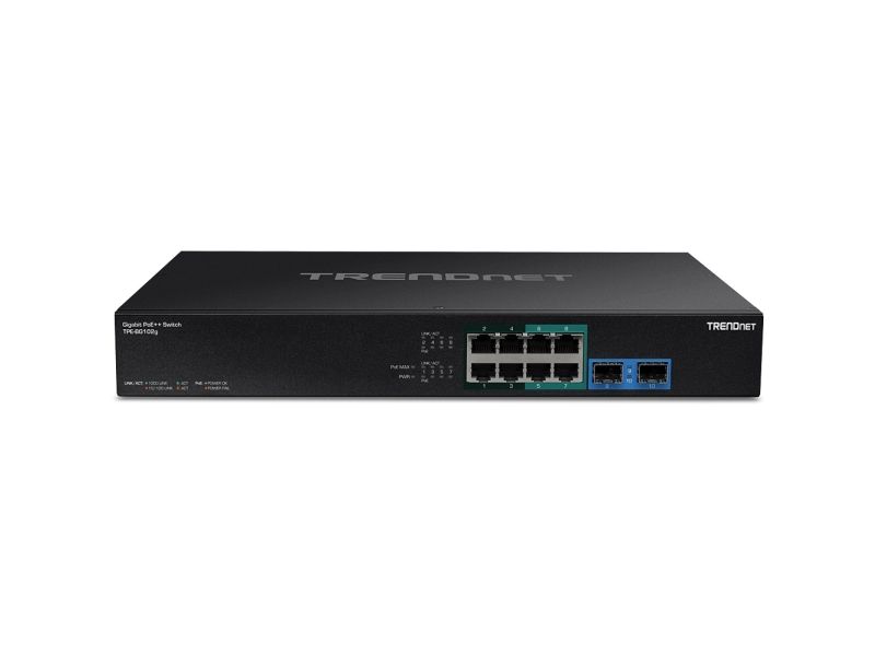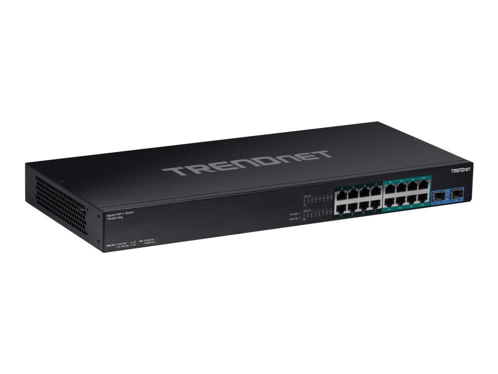TRENDnet's Unmanaged Gigabit PoE++ Switches provide high bandwidth performance, ease of use, and reliability. These IEEE 802.3bt compliant switches feature a sturdy 1U 19" rack mountable metal housing with mounting brackets included. These high power PoE++ switches also offer SFP slots for long distance fiber network applications. Installers and integrators can save on equipment costs and reduce installation time with TRENDnet's unmanaged high power PoE++ switches by delivering up to 95W per port of PoE++ power and data over existing Ethernet cables. Easily network PoE devices such as high-power wireless access points, PTZ cameras, digital signage, IPTV decoders, access controls, and more with these high power PoE++ switches.