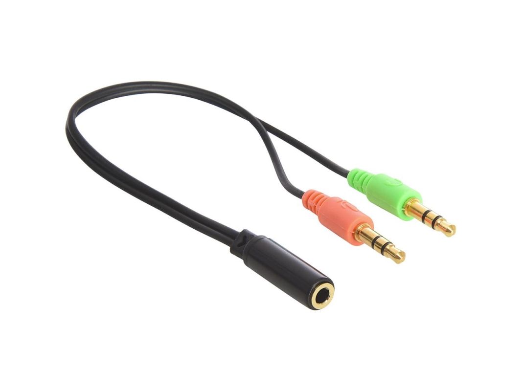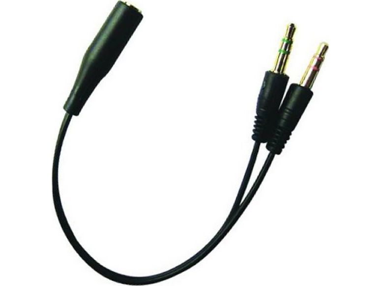 Många headset för smartphones ansluts till telefonens kombinerade ljudingång och -utgång med fyra poler. På en dator finns det vanligtvis två kontakter: en ljudutgång och en mikrofoningång. Den här adaptern omvandlar headsetets enda kontakt till datorns två kontakter, så att du kan använda telefonens headset här.