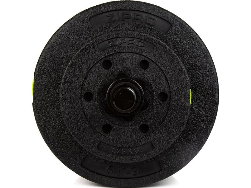 Zipro-setet innehåller totalt 16 vikter: 8 stycken på 1,25 kg, 4 stycken på 2,5 kg och 4 stycken på 5 kg. Detta gör att hantlarna kan användas i olika viktkonfigurationer - beroende på den övning som utförs, träningsplanen eller utövarens erfarenhetsnivå.