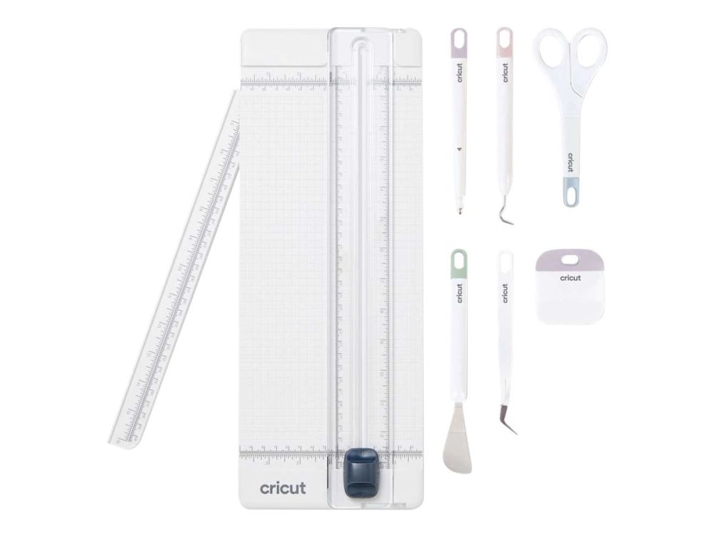 Craft in style with the Essential tool set featuring a 13 in (33 cm) portable trimmer. This 7-piece set comes with just about every tool needed for Cricut crafting and complements your machine with a classic blend of performance and style. You'll be equipped to handle any material that strikes your fancy - vinyl, iron-on, cardstock, and more. A go-to tool kit for all Cricut cutting machines.