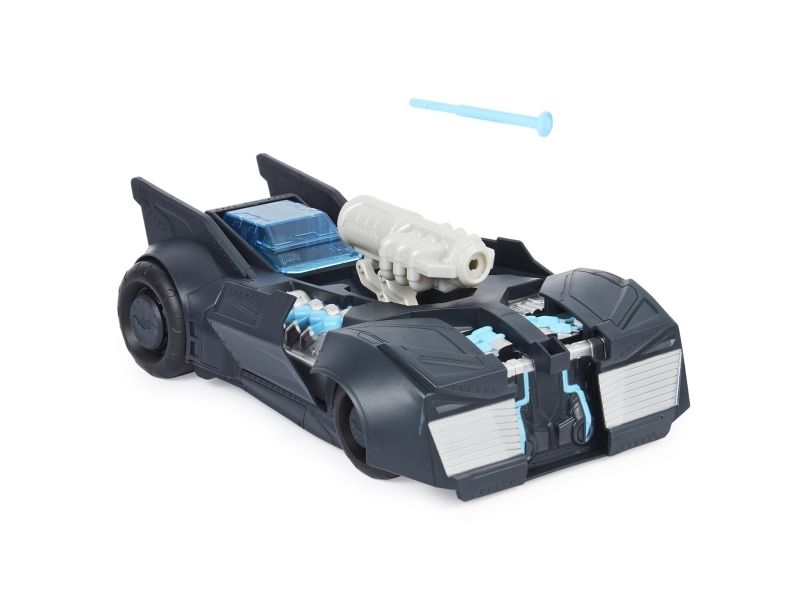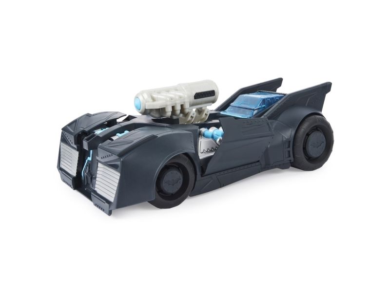 Take your Batman missions to the next level with the Tech Defender Batmobile! When there’s trouble in Gotham City, launch the Batmobile! Transform the Batmobile into battle mode by pushing the cockpit door down to reveal the blaster launcher! Pull the cockpit door back up to go into stealth mode.