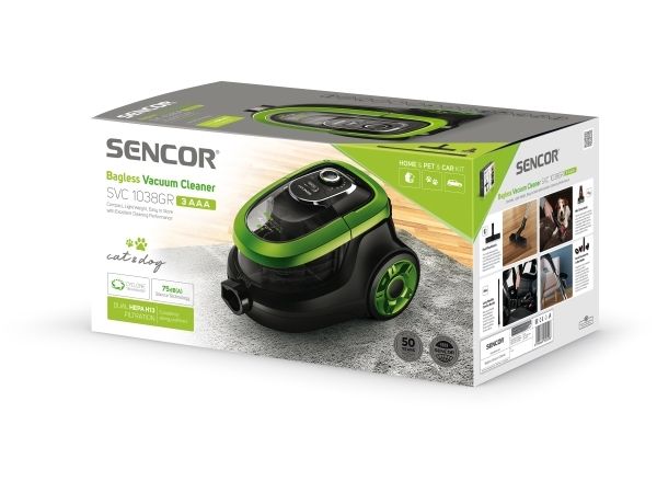 Sencor SVC 1038GR, Cylinderdammsugare, Torr, Utan påse, 1 l, HEPA, Cyklonisk