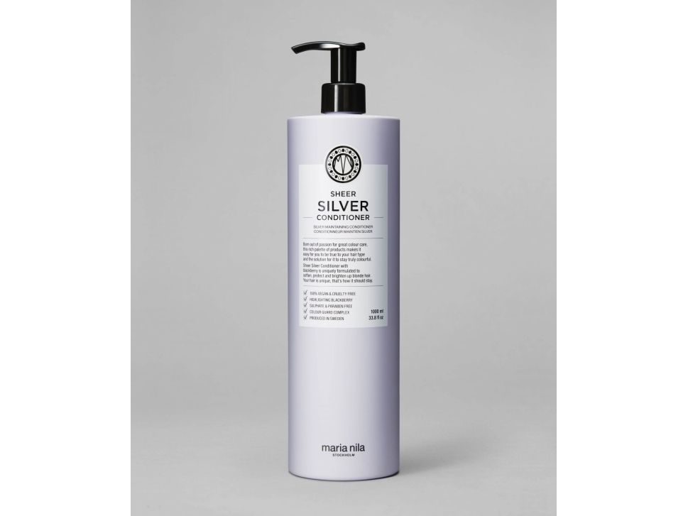 A detangling conditioner for blonde hair that softens, moisturises and strengthens your hair. Violet pigment and blackberry Extract neutralises golden shades and adds shine. The Sheer Silver Conditioner has a fresh scent of Orange and Grapefruit. Colour Guard Complex preserves the colour by protecting your hair from UV radiation and free radicals.