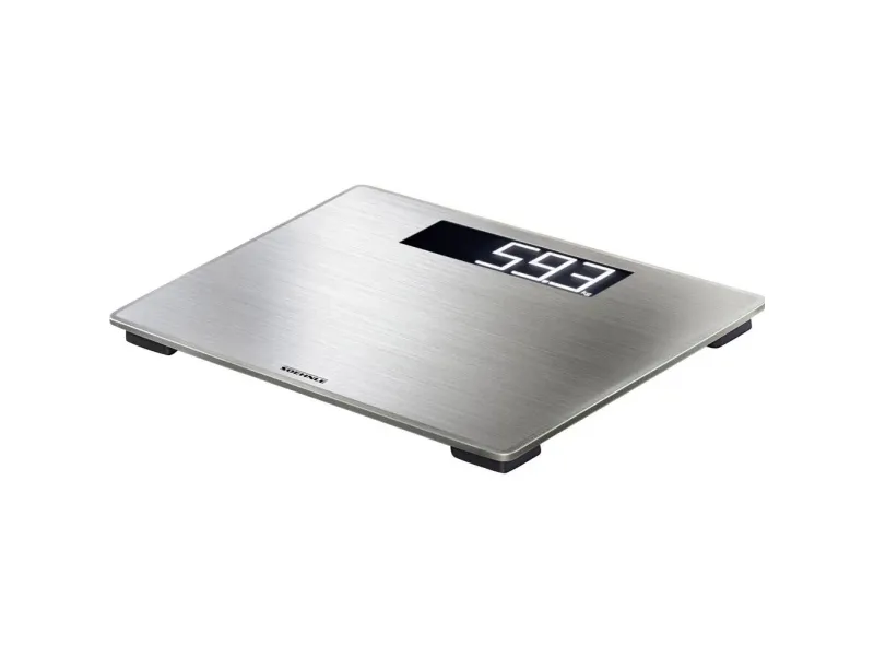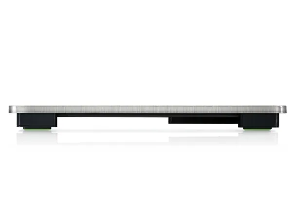 A carefully planned and furnished bathroom needs accessories which fit perfectly into the overall image. The Style Sense Safe 300 digital bathroom scales are exactly that. With its especially high quality stainless steel weighing surface, the scales are far more than an essential accompaniment in the bathroom. It is a designer object which brings modern elegance into the bathroom, along with a convincing number of functions. The thin design together with the anti-slip feet and the XXL surface made from stainless steel guarantee safe and comfortable standing and is easy to clean thanks to its anti-fingerprint layer. The extra large, illuminated LCD display is integrated harmoniously into the design which is extremely easy to read, even in low lit environments. The very high load-bearing capacity is also very satisfying. The weight is displayed accurately to 100g increments and up to a maximum of 180kg. It adds convenience thanks to the automatic on/off function when stepping onto and off the scales. This makes the Style Sense Safe 300 very energy efficient, with long battery life of over three years when used on average twice a day.